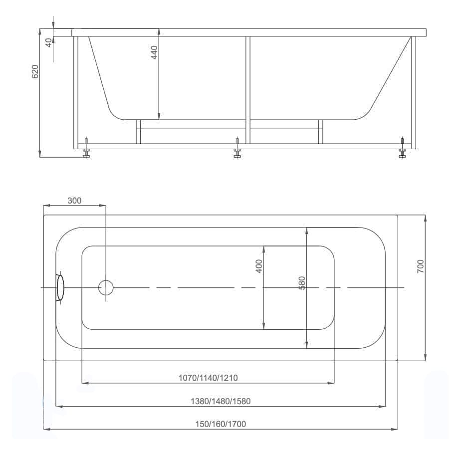 Стандартные размеры, см:170x70