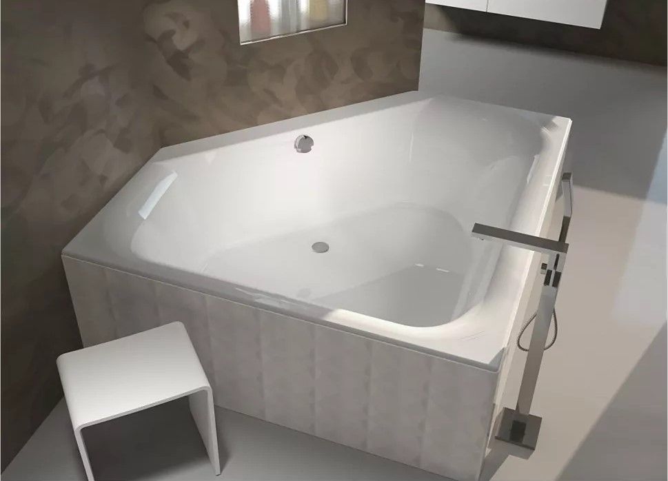 Ванна имеет приплюснутую переднюю часть, это очень удобно для облицовки ванны плиткой