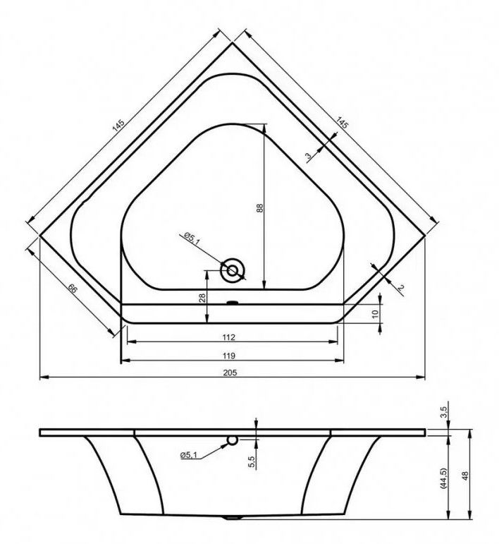 Материал непористый и гладкий, поэтому на нём не остаются известковый налёт и бактерии, поверхность ванны легко очищается.