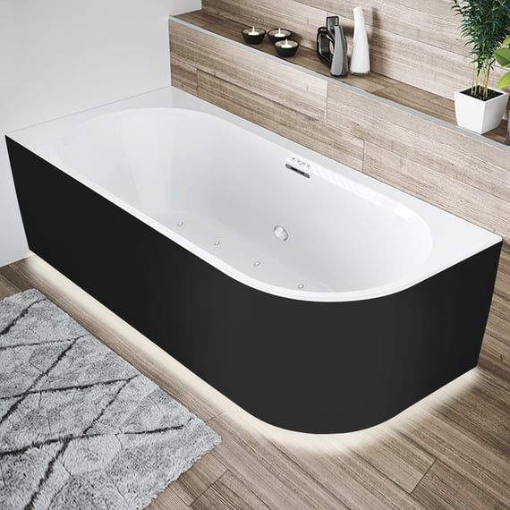 Акриловая ванна Riho Desire Corner Velvet Sparkle System LED Fall B087010220 R 184x84см с аэромассажем и подсветкой заполнение через перелив чёрный матовый/белый матовый купить