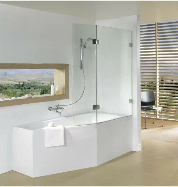 Ванна сужается по направлению к сливному отверстию, на внешней части встроенная удобная ручка. Возможная комплектация шторкой.