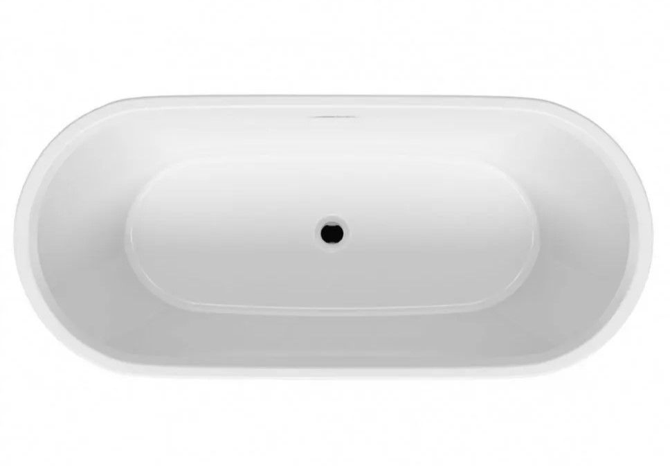 Белая матовая ванна с системой наполнения поставляется с хромированным сливом переливом