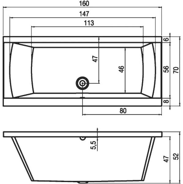 Прямоугольная акриловая ванна RIHO Julia 160x70 изготовлена из высококачественного листа акрила глянцевого белого цвета