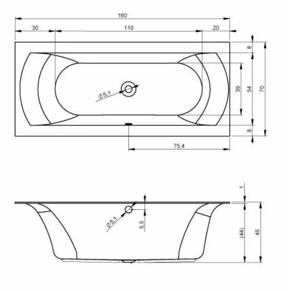Акриловая ванна RIHO Linares 160x70 изготовлена из высококачественного листа акрила белого цвета, полностью армирована.