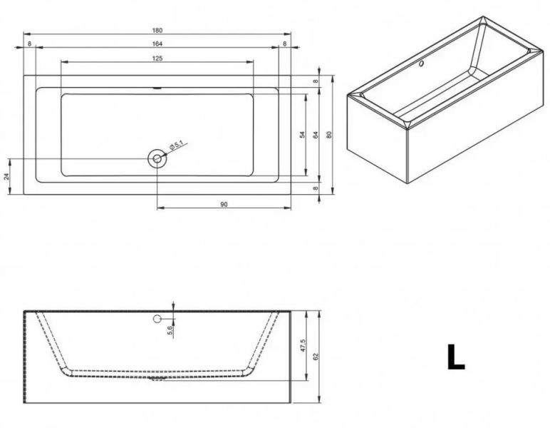 Прямоугольная? ванна RIHO Lugo 180x80 L Plug & Play, из глянцевого белого акрила с прямыми симметричными спинками, гладкой внутренней формой и центральным сливом, представляет собой полностью собранную на заводе конструкцию.