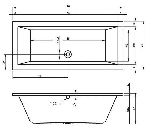 Акриловая ванна RIHO Lusso 170x75 изготовлена из высококачественного листа акрила белого цвета, полностью армирована.