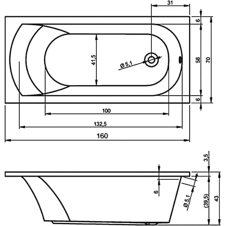 Конструкция ванны симметрична, поэтому может быть установлена в правом и левом углу.