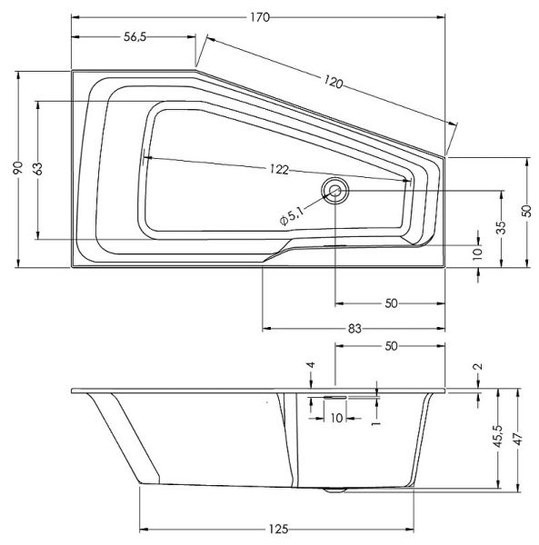 Акриловая ванна RIHO Rethink Space 170x90 L изготовлена из высококачественного листа акрила глянцевого белого цвета.