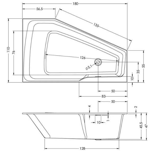 Асимметричная ванна RIHO RETHINK Space 180110 L PLUG & PLAY RIHO FALL, из глянцевого белого акрила с тонкими бортами и большим внутренним пространством, сливом Push-Open и щелевым переливом, представляет собой полностью собранную на заводе конструкцию.