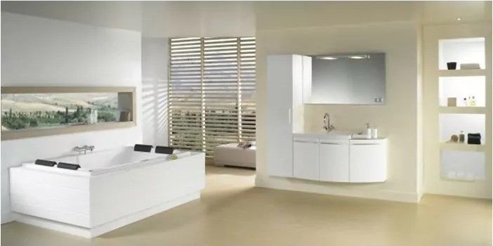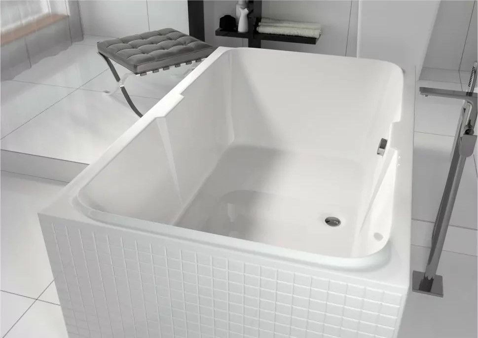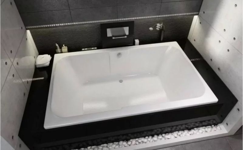 Эта глянцевая белая акриловая ванна подходит для двух человек, как сидящих рядом