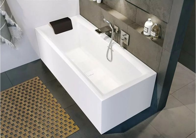 ?Длинная и короткая стороны ванны оснащены сразу отлитыми панелями, изготовленными из того же акрилового материала, что и ванна. Всё идеально, никаких швов!