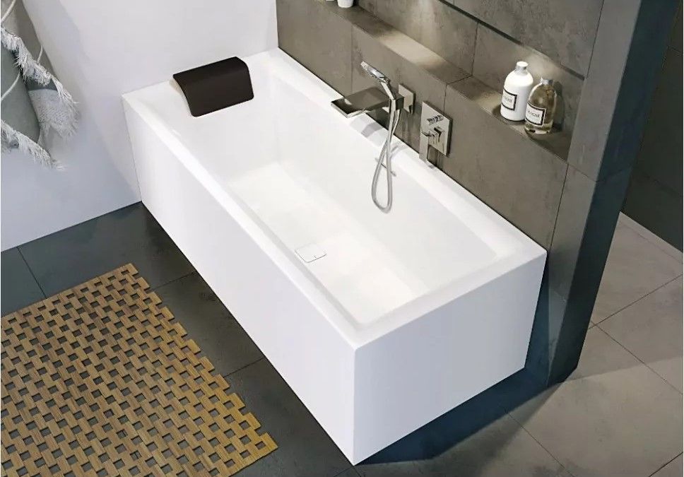 ?Длинная и короткая стороны ванны оснащены сразу отлитыми панелями, изготовленными из того же акрилового материала, что и ванна. Всё идеально, никаких швов!