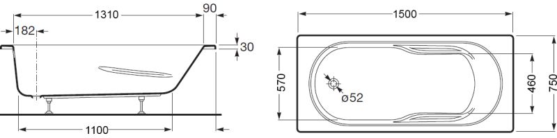 Стандартные размеры, см:150x75