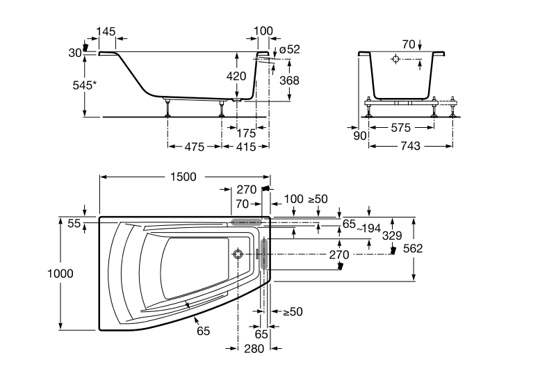 Акриловая ванна Roca Hall Angular 150х100 ZRU9302864 L купить