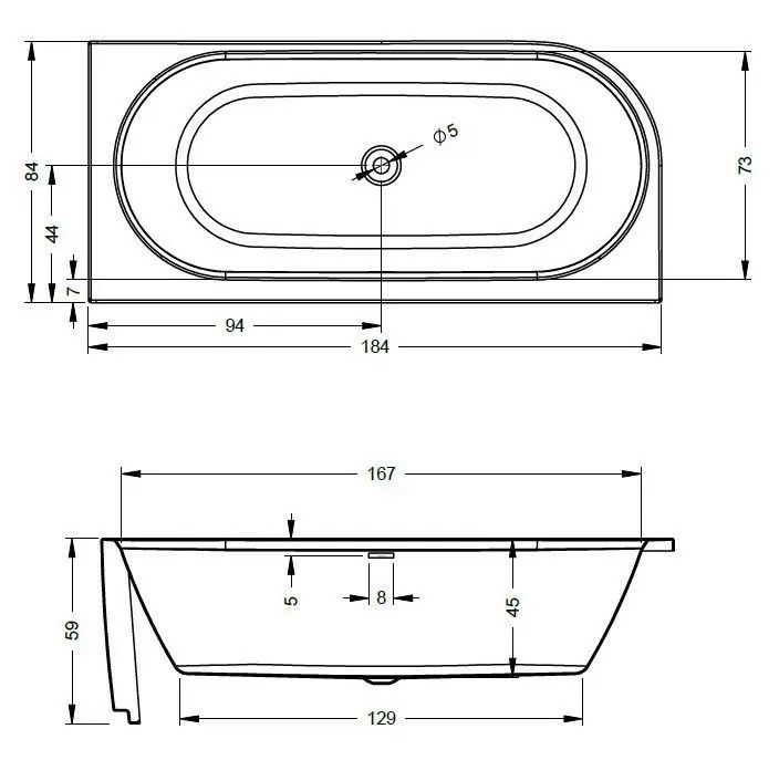 Щелевое отверстие перелива может быть использовано для встроенного наполнителя ванны Riho Fall (приобретается отдельно)