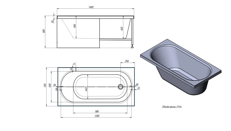 Акриловая ванна Timo Roha ROHA1470 140x70 см