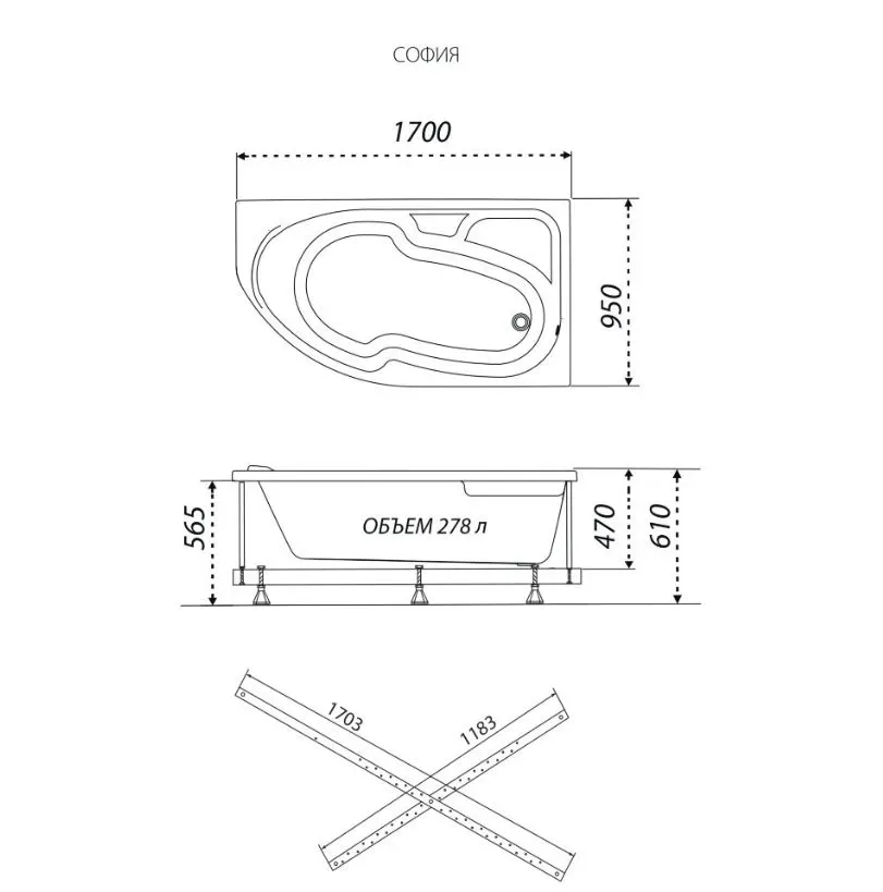 Акриловая ванна Triton София Щ0000046665 правая 170x95 см на Х-каркасе белый купить