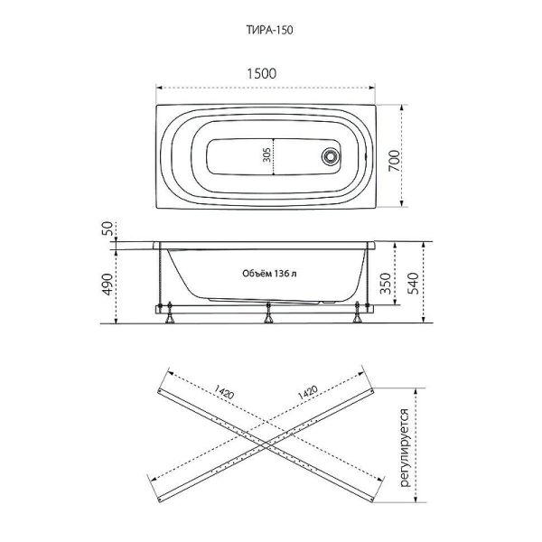 Акриловая ванна Triton Тира Щ0000016666 150x70 см белый