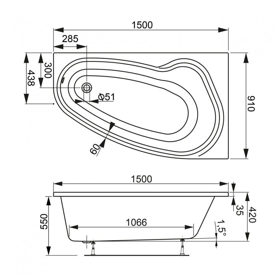 Акриловая ванна VagnerPlast Avona VPBA159AVO3PX-04 правая 150x90см белый