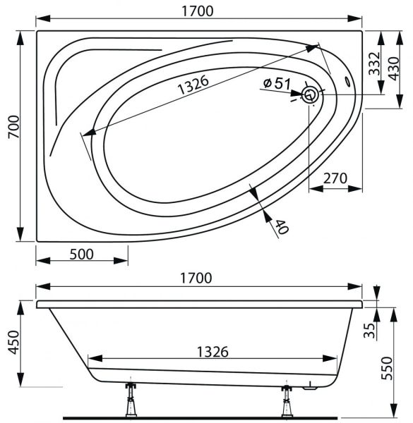 Акриловая ванна VagnerPlast Hapi VPBA170HAP3PX-04 правая 170x110см белый