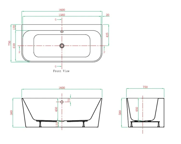 - Глубина ванны - 45 см