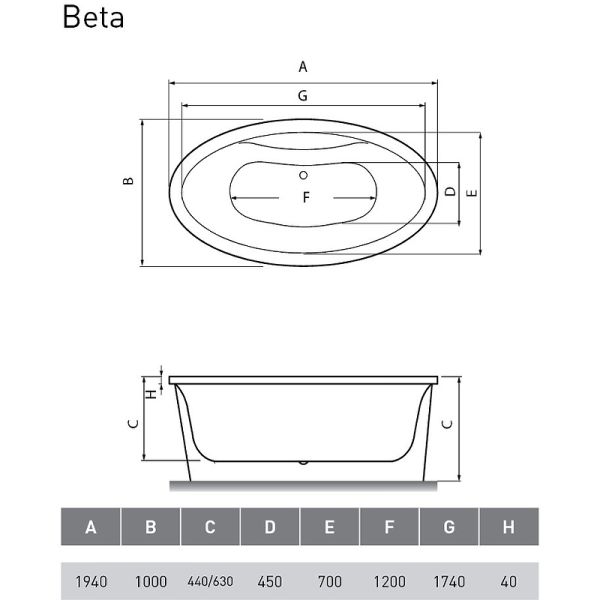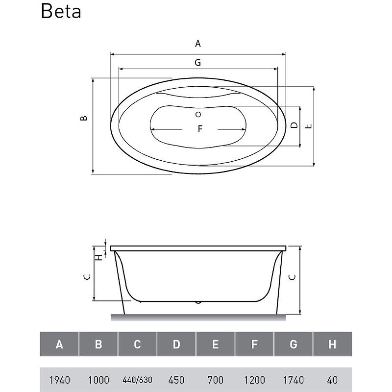 Акриловая ванна Vayer Beta 194x100 Гл000006828 без гидромассажа купить