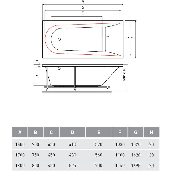 Стандартные размеры, см:170x75