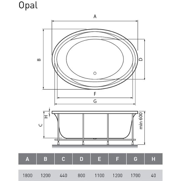 Высота ванны на каркасе: 60 см.