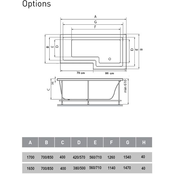 Акриловая ванна Vayer Options 165x85 L Гл000023294 без гидромассажа