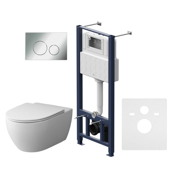 Полностью готовый к установке комплект: система инсталляции с клавишей, подвесной унитаз с сиденьем. Неразборная рама из стального профиля выдерживает нагрузку до 400 кг. Полностью изолированный бачок с качественной двухрежимной смывной арматурой укомплектован пневматической клавишей в цвете белый. В комплекте все необходимые патрубки и крепления, а также прокладка между унитазом и стеной - звукоизоляция.Подвесной унитаз Awe FlashClean имеет одну из самых востребованных форм в керамике - дизайн в стиле organic, вдохновленный природой, идеально сбалансированные пропорции. Благодаря скрытым креплениям и скрытому фановому выходу уход за керамикой удивительно легкий. Эффективный каскадный смыв гарантирует идеальную чистоту с первого раза и 100%ное омывание поверхности унитаза.В комплекте быстросъемное сиденье из дюропласта с функцией микролифт. Механизм плавного опускания, рассчитанный на 100 000 закрываний - комфорт в использовании, механизм быстрого снятия - легкость в уходе за сиденьем и керамикой.