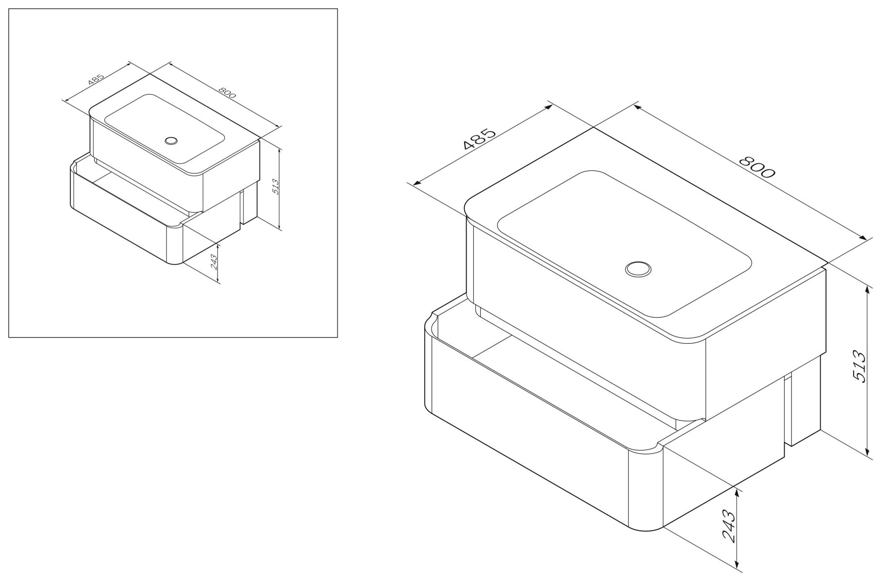 Характерный дизайн ультратонкой раковины из искусственного мрамора создает впечатления, будто она парит в воздухе