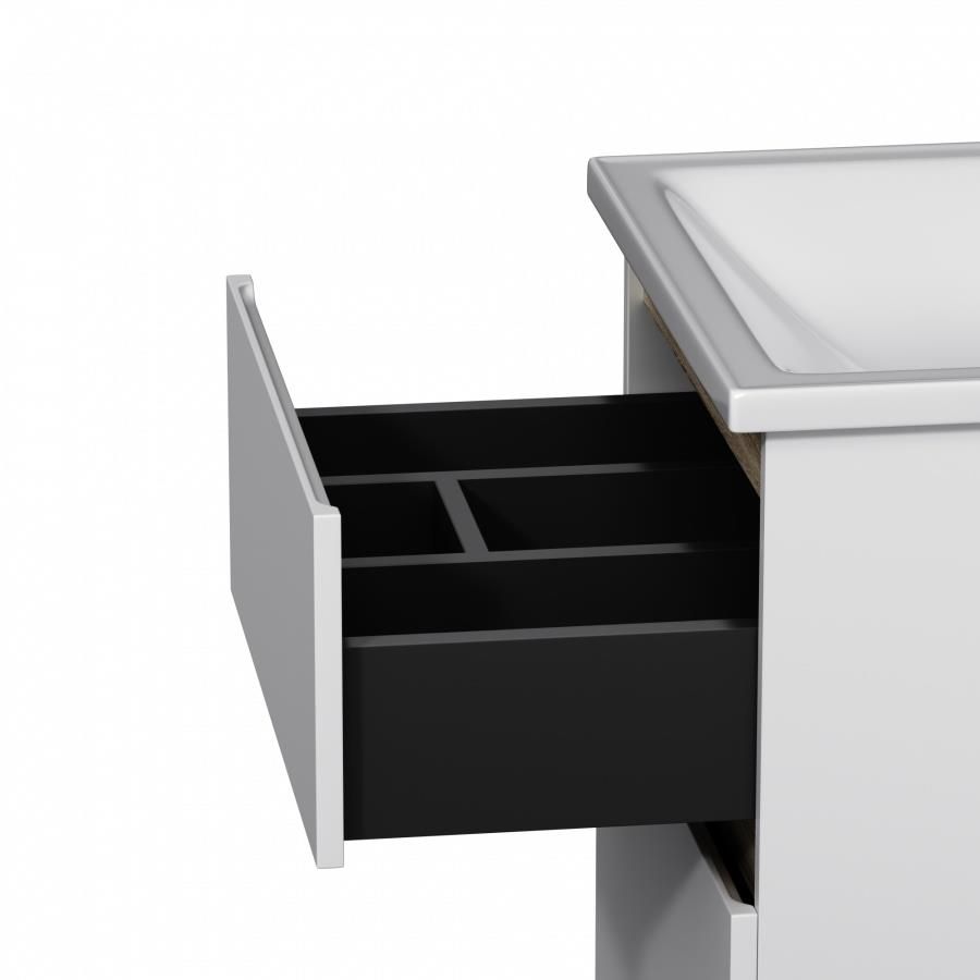 может позволит себе каждый. Самое эстетичное сочетание цветов и фактур от дизайн-бюро Danelon Meroni (Великобритания & Италия): белые глянцевые фасады дополнены отделкой под светлое дерево.Функциональный органайзер в первом ящике позволит хранить необходимые косметические средства под рукой и в полном порядке. Внутреннее покрытие каждого ящика выполнено в современном