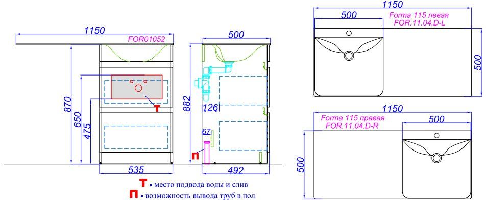 Forma напольная тумба с двумя полноразмерными ящиками с умывальником с крылом под стиральную машинку 115 см
