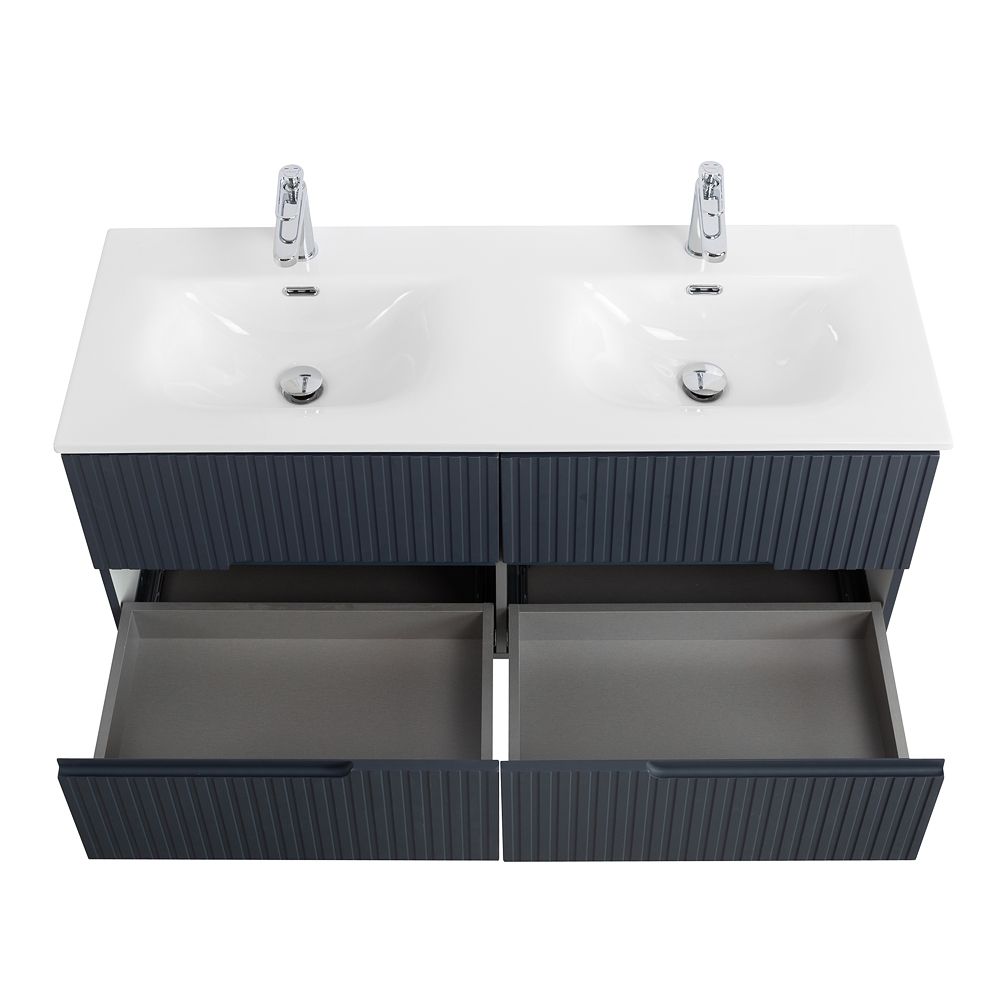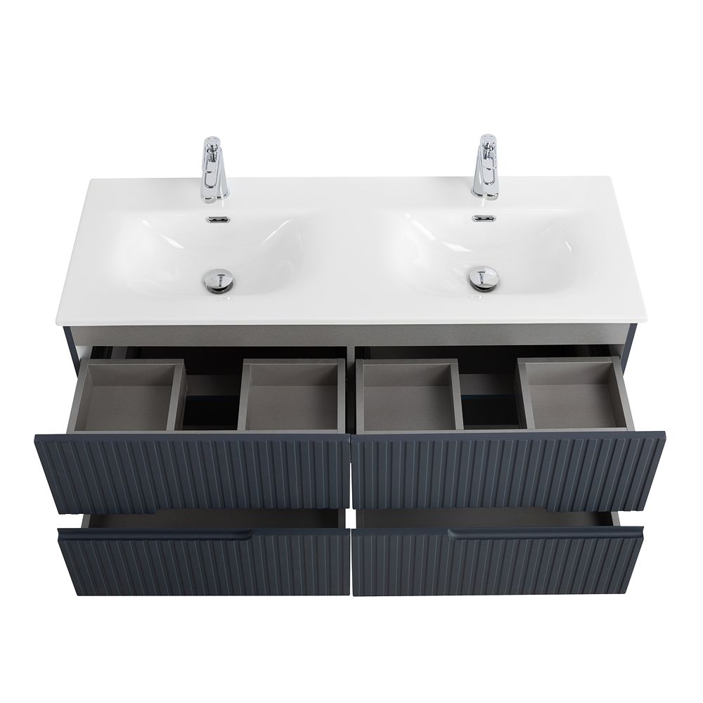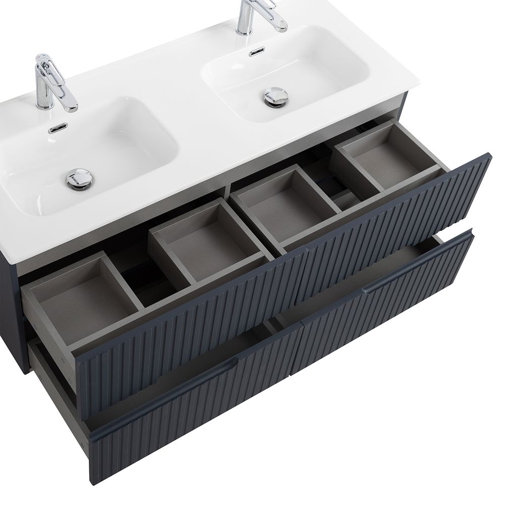 База под раковину Cezares подвесная с четырьмя выкатными ящиками для раковины с двумя чашами, Grafito, 1200x457x500, DUET-N-1200-4C-SO-2-GR-P