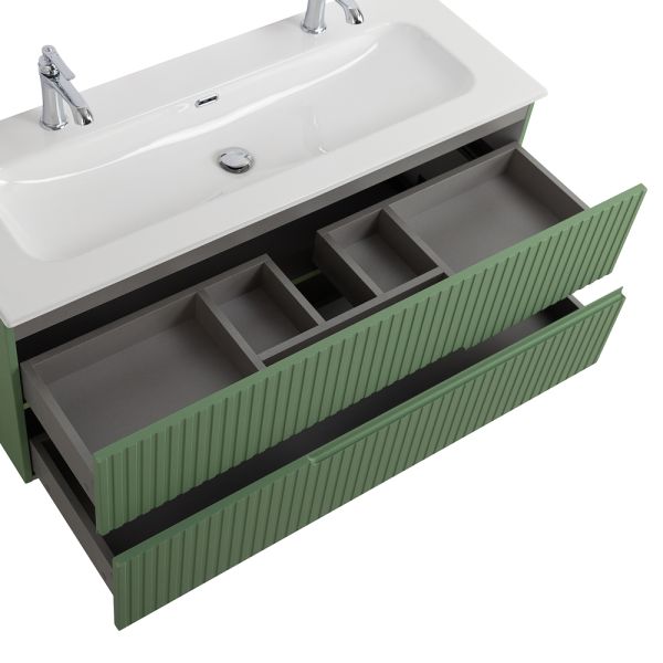 База под раковину Cezares подвесная с двумя выкатными ящиками, Фисташковый Софт, 1200x457x500, DUET-N-1200-2C-SO-PS-P