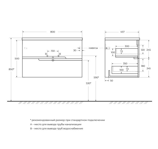 База под раковину Cezares подвесная с двумя выкатными ящиками, Grafito, 800x457x500, DUET-N-800-2C-SO-GR-P купить