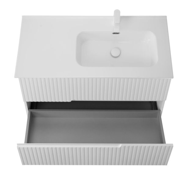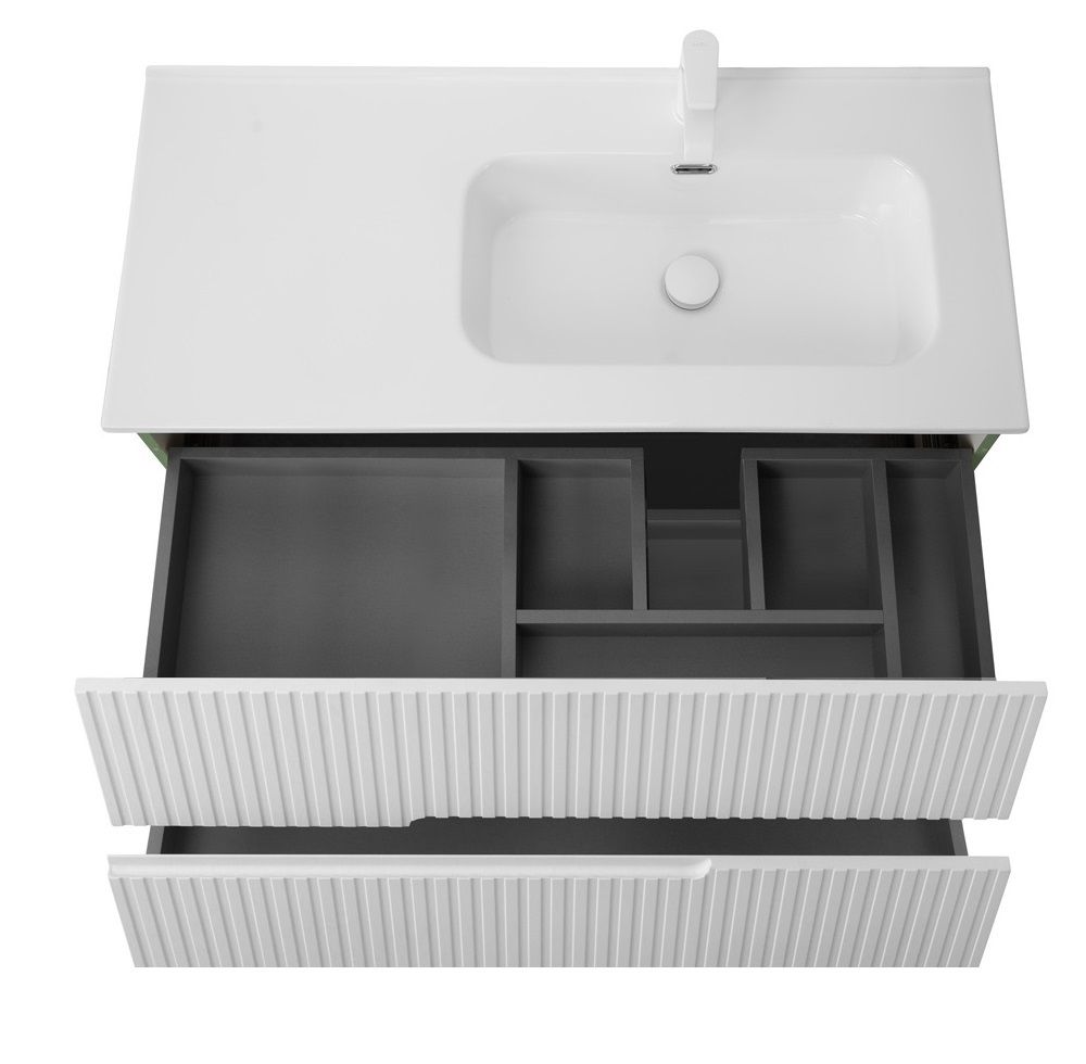 База под раковину Cezares подвесная с двумя выкатными ящиками, правосторонняя, Bianco Lucido, 1000x457x500, DUET-N-1000-2C-SO-BL-R
