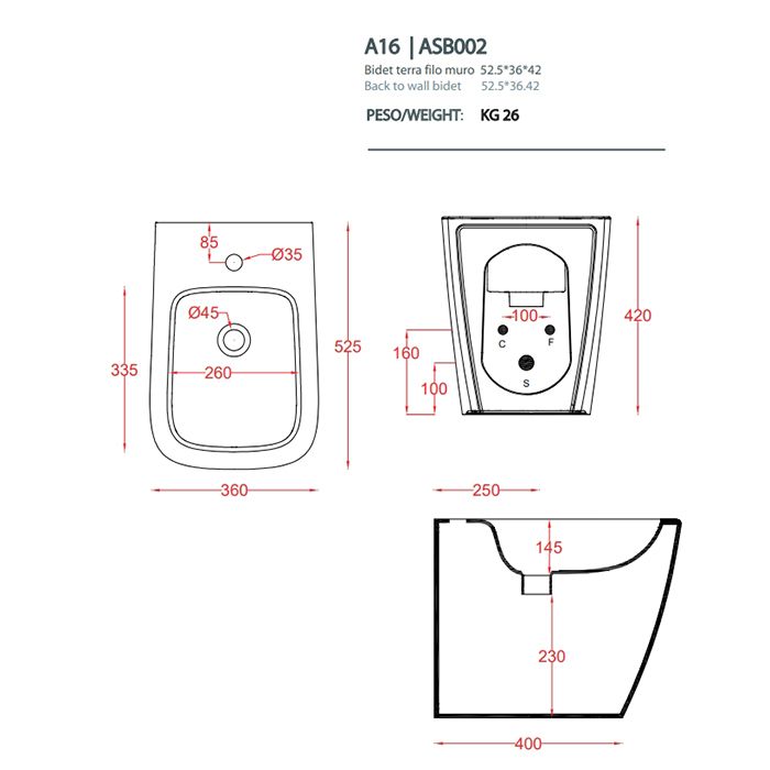 Биде Artceram A16 ASB002 05 00 белый купить