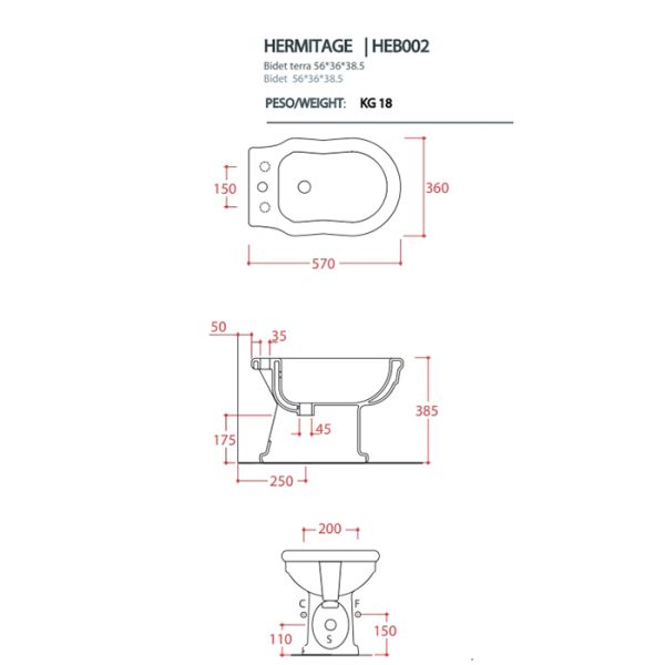 Биде Artceram HERMITAGE HEB002 03 00 nero черноеArtceram HERMITAGE биде напольное 55*36см с 1 отв под смеситель с креплением, цвет черный