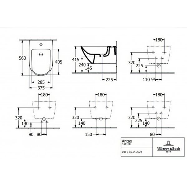 Биде Villeroy Boch Antao подвесное 541100R1 альпийский белый