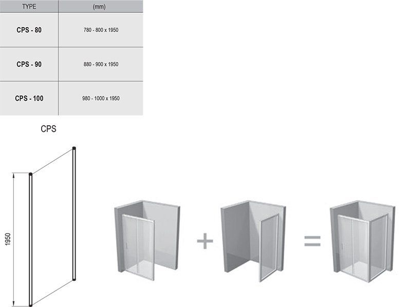 Идеальный партнер для душевых дверей CRV1 и CRV2. Их комбинация позволяет создать прямоугольный или квадратный душевой уголок в соответствии с Вашими потребностями.