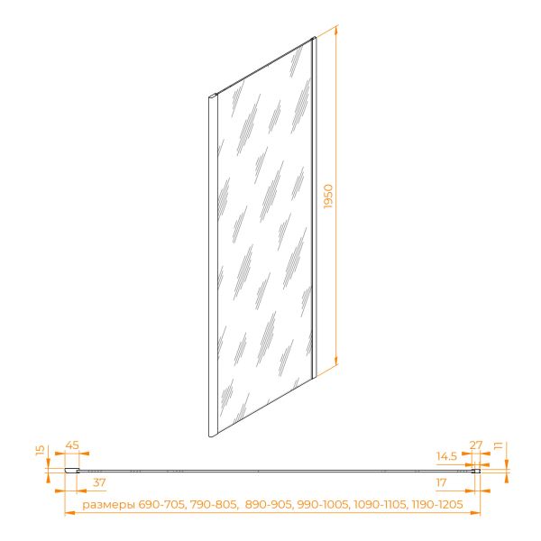 Комплектуется с моделями высотой 1950 мм и цветом профиля «чёрный». Подходит к моделям WA-002 / SV-12 / SV-13 / LE-12 / PA-11 / PA-12 / PA-13 / PA-016 / PA-23 / PA-24
