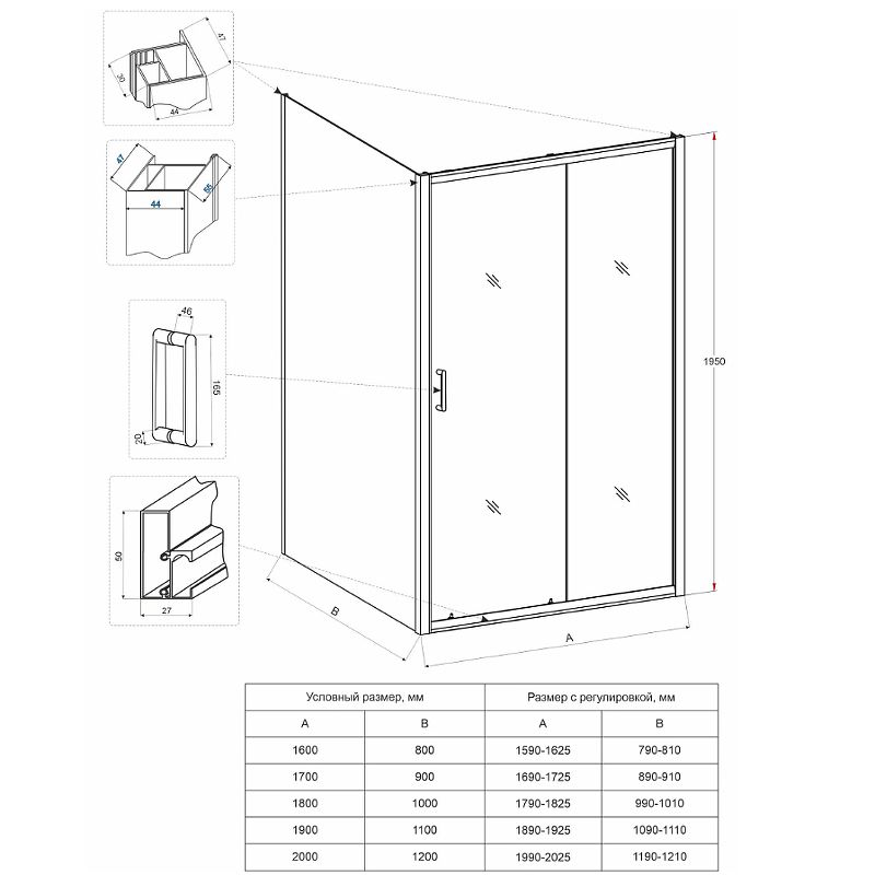 Боковая панель Veconi KP-13, 900х1950 , хром, стекло прозрачное купить