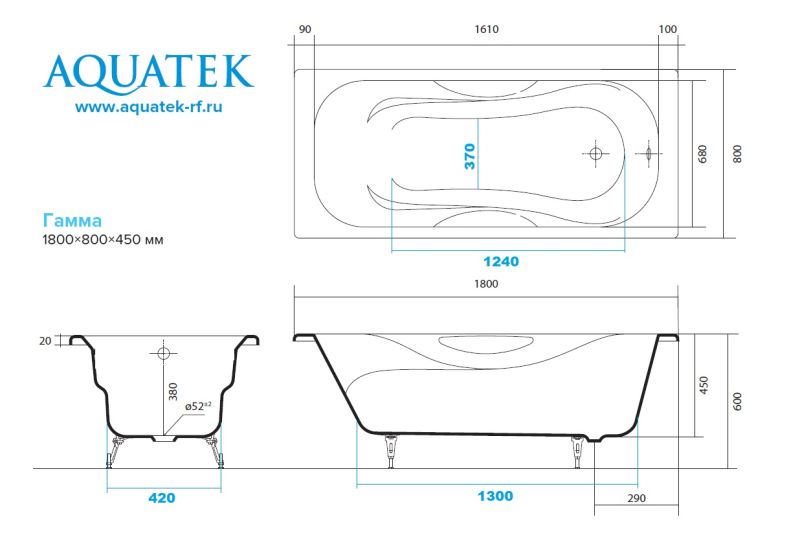 Чугунная ванна Aquatek Гамма AQ8080FH-00 без ножек и ручек 180х80 см купить