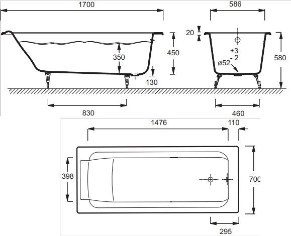 Чугунная ванна Jacob Delafon PARALLEL E2947-00 170x70