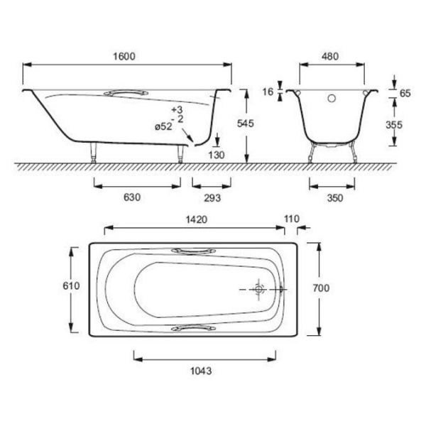 Смягченные углы с внутренней стороны чаши ванны облегчают уход.
