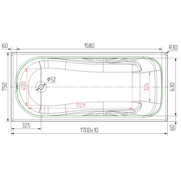 Стандартные размеры, см:170x75