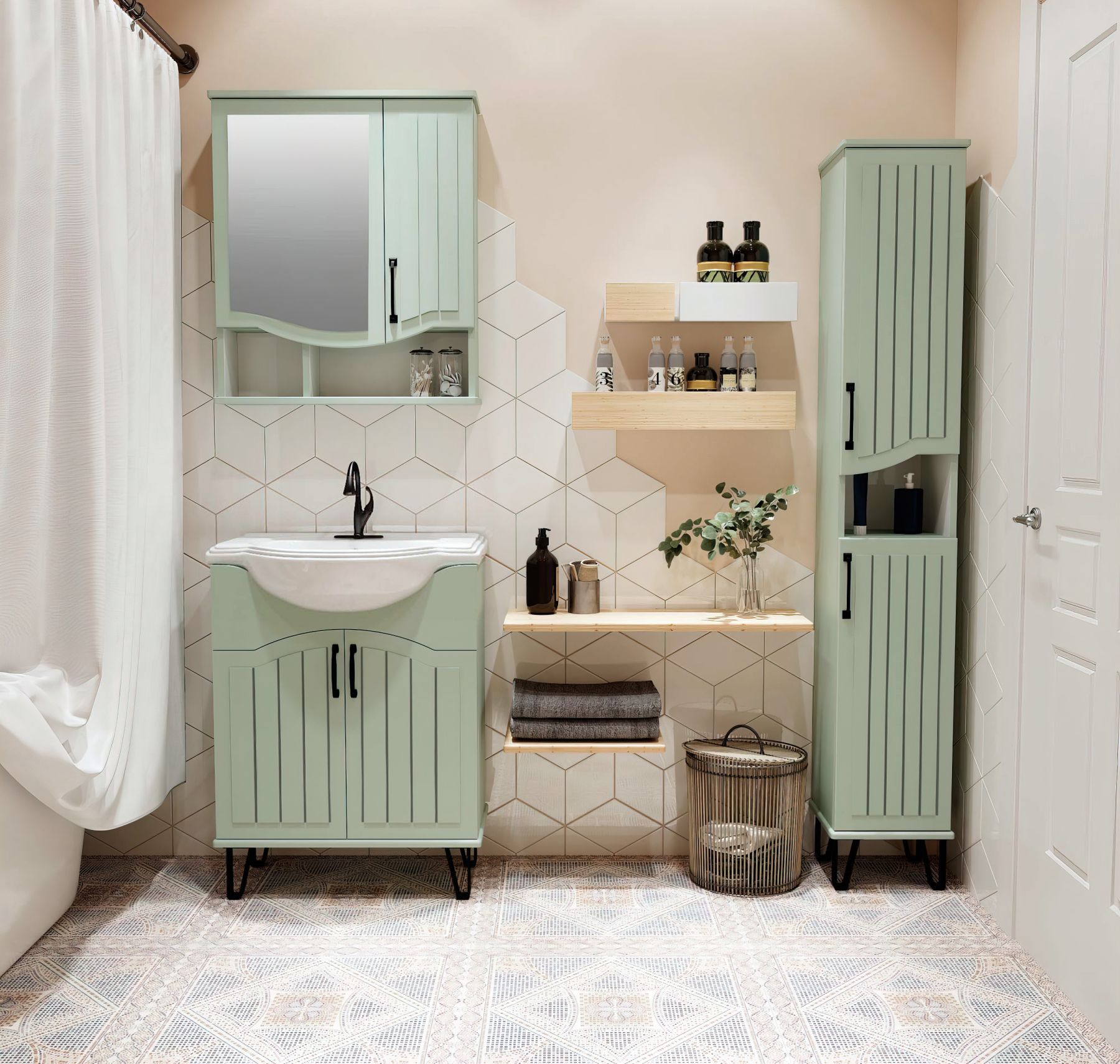 Зеркальный шкаф Runo мята Марсель 65 (00-00001219)