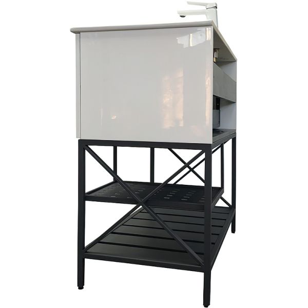 Система хранения: один выкатной ящик, две открытые полки.