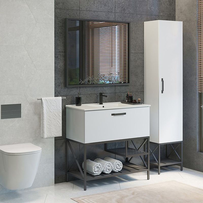 Тумба с раковиной Comforty Бредфорд 90 00-00009955.Характеристики:Тумба:Цвет: белый глянец.